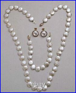 Gold 14K Peoples Pearl Necklace and Earrings Set
